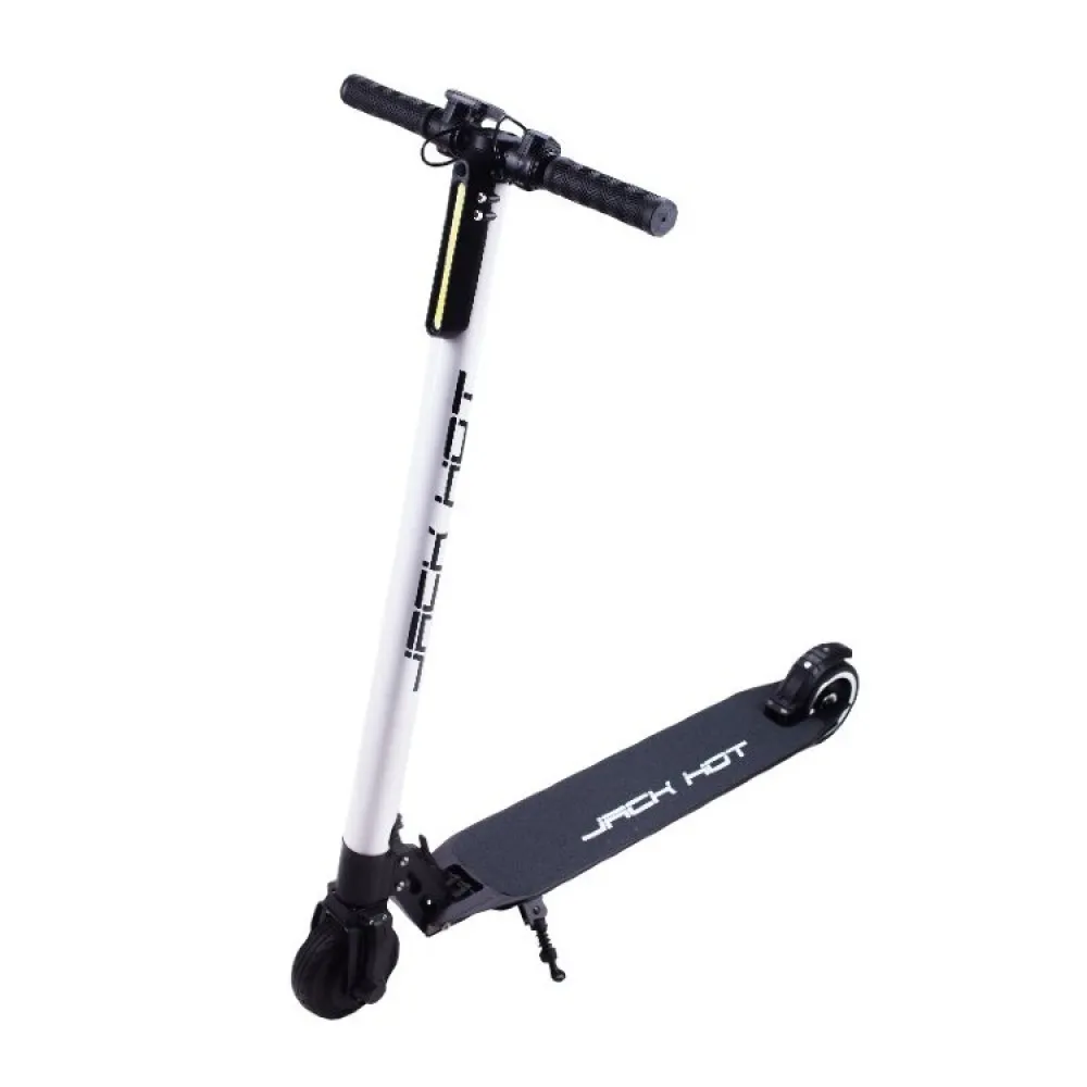 Отличительная особенность электросамоката от обычного самоката – встроенный электромотор, благодаря которому устройство способно развивать большую скорость, а вы не будете уставать во время поездок. Jack Hot AL не нужен бензин, источником энергии для него служит электричество – электросамокат заряжается от обычной электросети, и при полной разрядке аккумулятора, его емкость восстанавливается в течение нескольких часов.