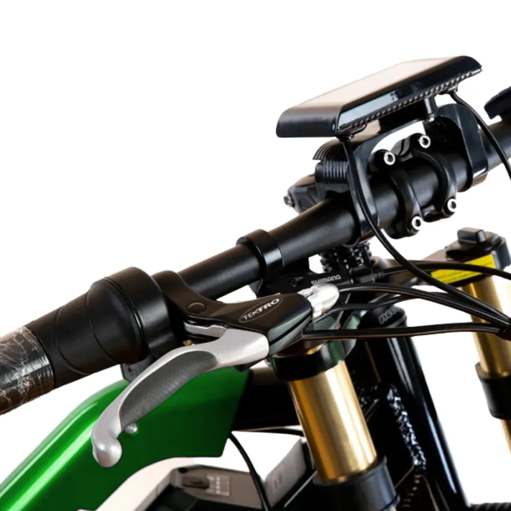 При мощности двигателя 1500 Вт электровелосипед без труда развивает скорость до 52 км/час, и на одной подзарядке преодолевает до 100 км пути. Половинчатая ручка управления скоростью предназначена для удобного переключения 1 из 8 скоростных режимов.