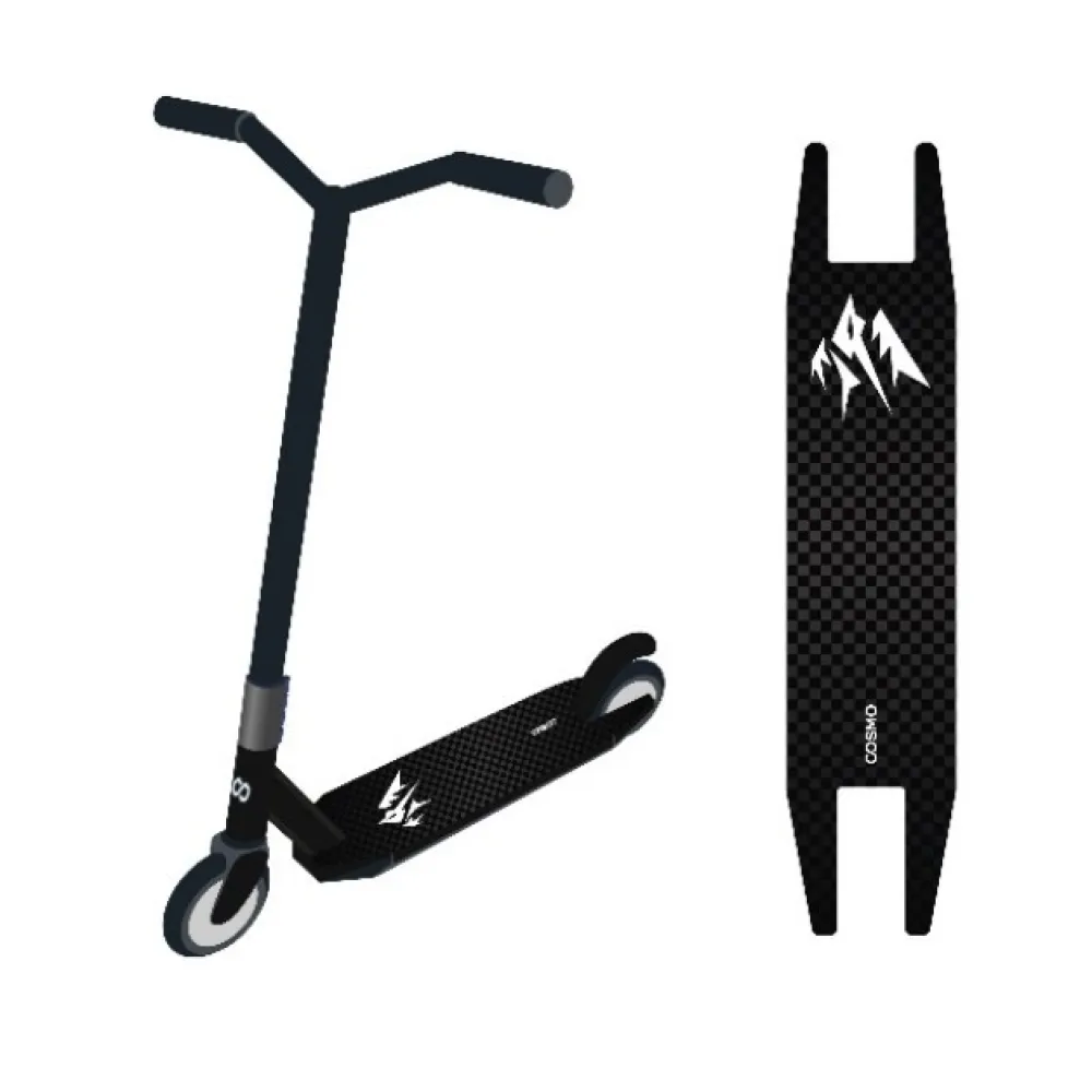 Несмотря на позиционирование модели в качестве самоката для новичков, COSMO Advance вполне может потягаться с самокатами среднего уровня. Модель укомплектована "Т" – это является «эталоном» для большинства моделей трюковых самокатов. А резиновые рукоятки исключают скольжение и потение ладоней, позволяя прочно держать самокат в руках, так что во время езды они не будут двигаться, издавая звуки щелчков и скрипов.