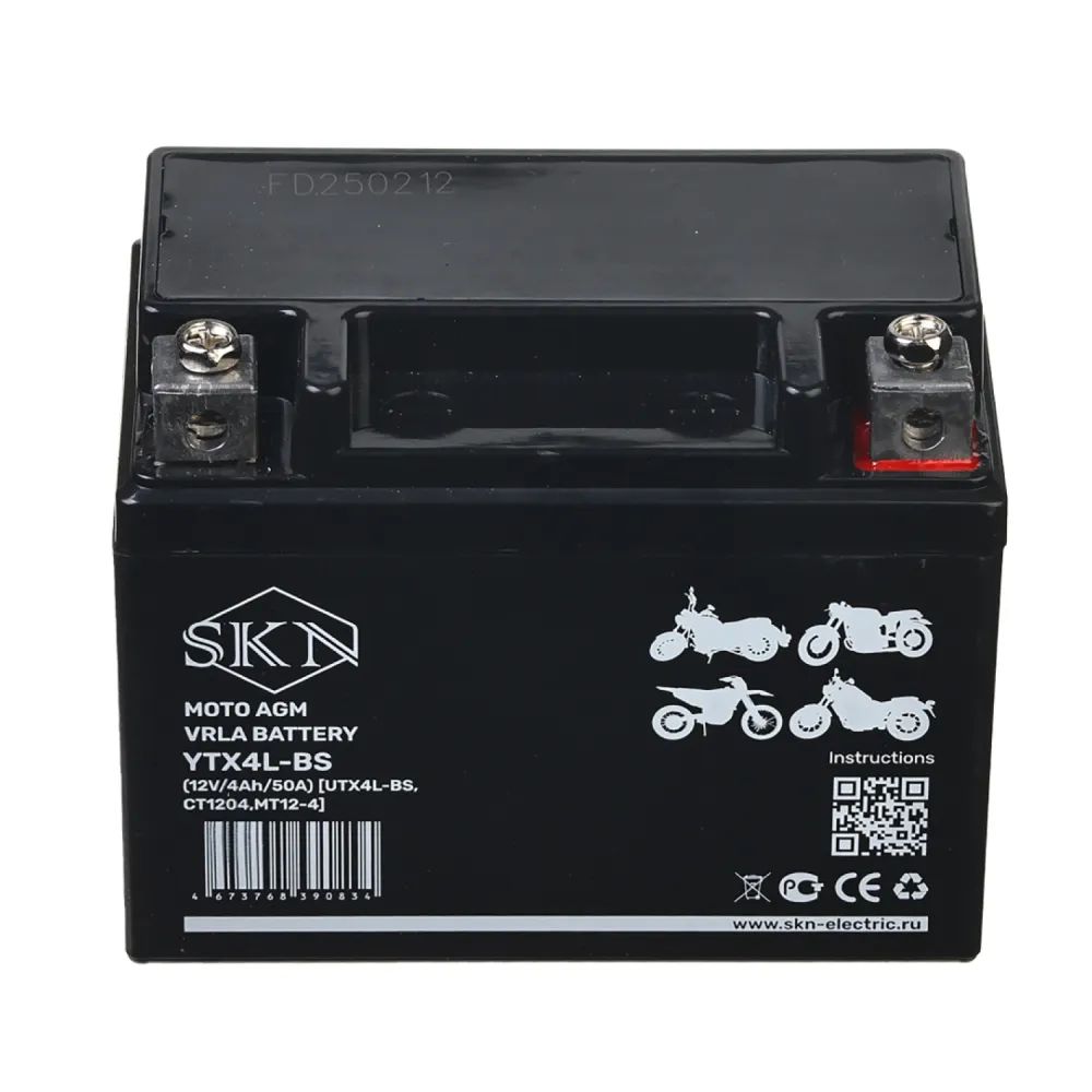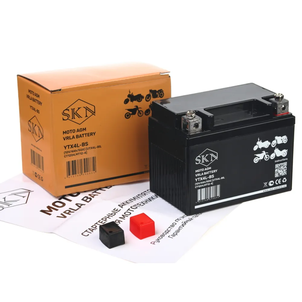 Аккумулятор стартерный для мототехники SKN YTX4L-BS (12V/4Ah/50A) [UTX4L-BS, CT 1204, MT 12-4]